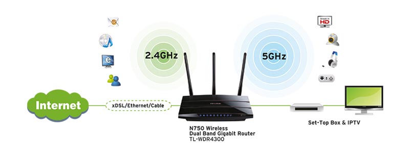 TL-WDR4300, sırasıyla 300Mbps ve 450Mbps hızlarında aynı anda hem 2.4GHz hem de 5GHz sinyal gönderir ve alır. Bu, aynı yerde iki kablosuz router gibi, kullanıcıların 300Mbps’de 2.4GHz bant üzerinde e-mail ve web’de dolaşma gibi günlük uygulamaları çalıştırmalarına izin verirken, HD video streaming veya online oyun oynama gibi yoğun bant genişliği kullanan veya gecikmeye duyarlı uygulamaları da, aynı zamanda 450Mbps’de daha net 5GHz bandında çalıştırır. dakikalar içinde paylaşabilecekler.