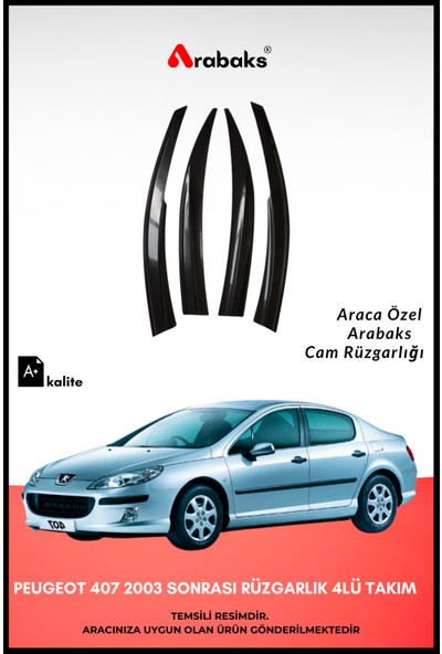 Arabaks Peugeot 407 2003 Sonrası Cam Rüzgarlığı 4'lü Takım (Mugen Tip, Dayanıklı Malzeme, Kolay Montaj)
