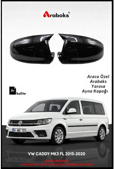 Arabaks Vw Caddy Mk3 Fl 2015-2020 Yarasa Ayna Kapağı 2'li Takım (Batman Tip, Dayanıklı Malzeme, Kolay Montaj)