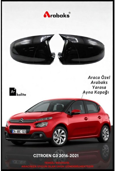 Arabaks Cıtroen C3 2016-2021 Yarasa Ayna Kapağı 2'li Takım (Batman Tip, Dayanıklı Malzeme, Kolay Montaj)