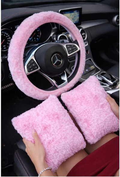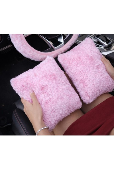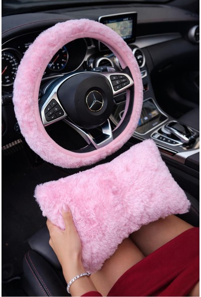 Arabasına Aşıklar Kulübü Şeker Pembe Peluş Direksiyon Kılıfı ve 2 Yastıklı Set