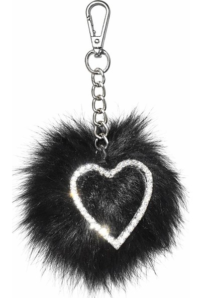 Arabasına Aşıklar Kulübü Siyah Tüylü Kalp Taşlı Anahtarlık