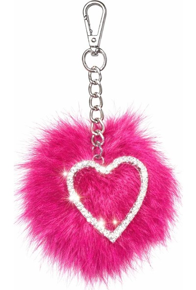 Arabasına Aşıklar Kulübü Fuşya Pembe Tüylü Taşlı Kalpli Anahtarlık