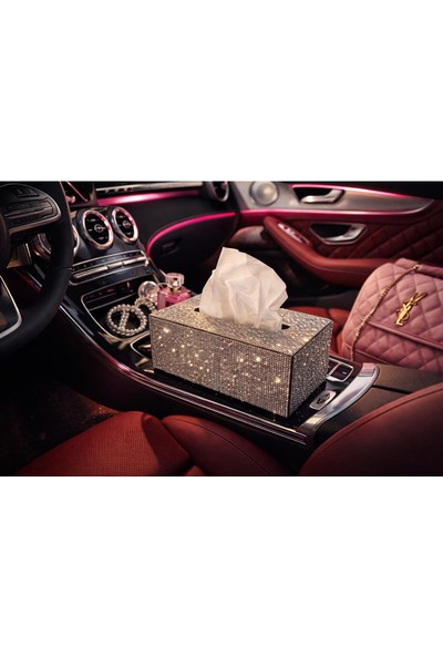 Arabasına Aşıklar Kulübü Gümüş Taşlı Dikdörtgen Peçete Kutusu