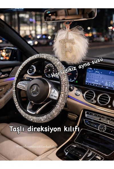 Arabasına Aşıklar Kulübü Gümüş Taşlı Direksiyon Kılıfı ve Dikiz Ayna Süsü (Istediğiniz Harfi Mesaj Atın)