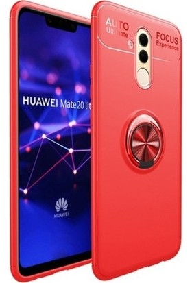 Arabulalaca Huawei Mate 10 Lite Kılıf Standlı Yüzüklü Mıknatıslı Kılıf + 9H Esnek Nano Cam Kırmızı