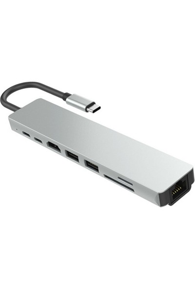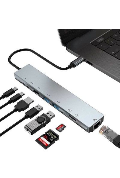 Arabulalaca A3449 M5 Işlemci 2026 Ethernet USB Type-C Hub HDMI Girişi Çevirici 8in1 Çevirici Adaptör