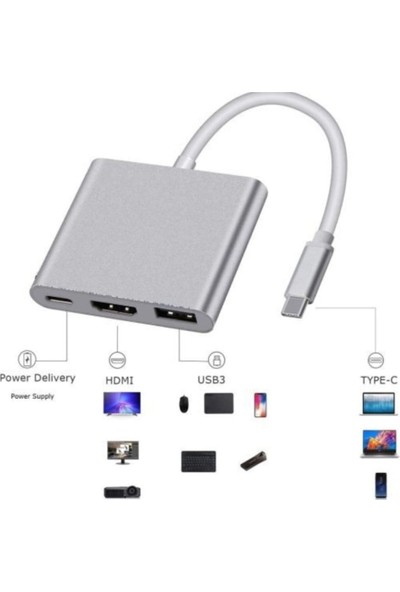 Arabulalaca MACBOOK Air M4 Çip 4K Type-C To 3 Portlu HDMI - USB - Type-C Çevirici Adaptör