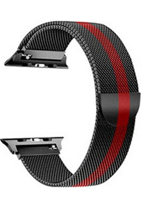 Arabulalaca Apple Watch Uyumlu Milano Loop Çelik Kordon 38 mm Kayış Seri 1-2-3 Siyah - Kırmızı