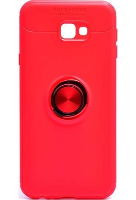 Arabulalaca Samsung Galaxy J4 Plus Kılıf Standlı Yüzüklü Mıknatıslı Kılıf + 9H Esnek Nano Cam Kırmızı