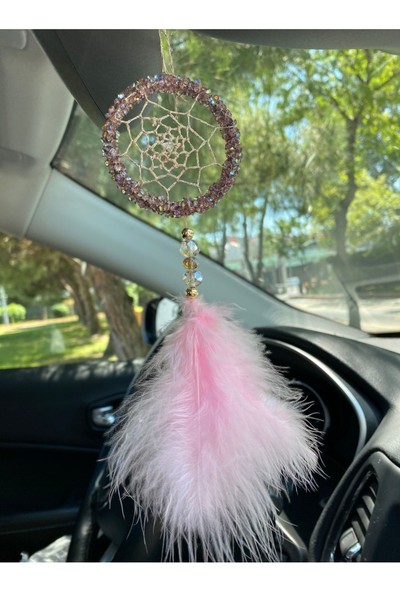 Araç Balkon Aksesuar Pembe Tüylü Taşlı Dikiz Aynası Süsü Bebek Süsü Hediyesi 04