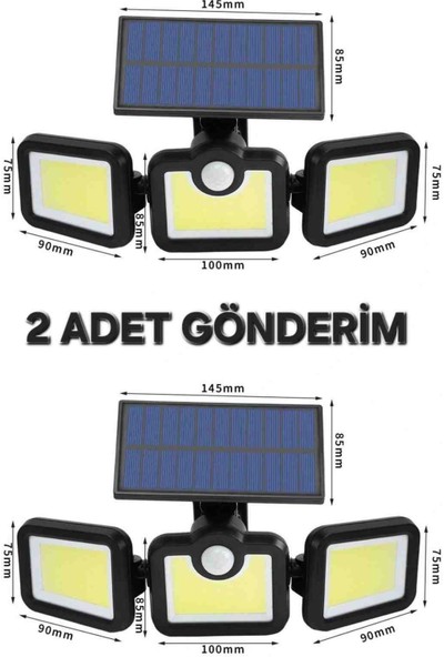 Aradığın Burada 2 Adet 3 Gözlü Solar Güçlü Aydınlatma Lambası