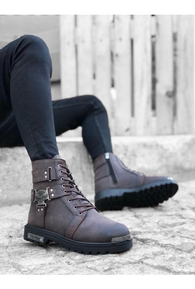 BA0080 Gladyatör Fermuarlı Tokalı Kahverengi Erkek Klasik Spor Klasik Yarım Bilek Bot