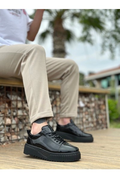 BA8104 Boa Yüksek Taban Rugan Siyah Bağcıklı Erkek Ayakkabı
