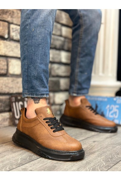 BA0351 Boa Bağcıklı Deri Tozu Günlük Taba Renk Spor Ayakkabı