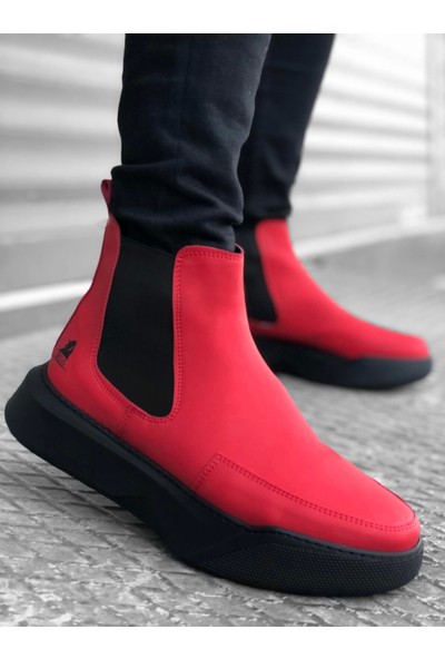 BA0150 Bağcıksız Bantlı Erkek Yüksek Taban Kırmızı Spor Bot