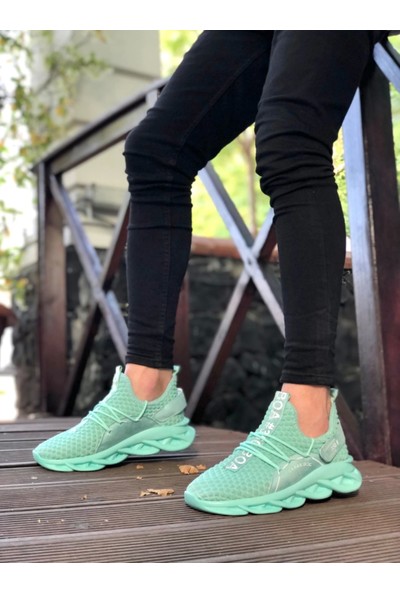 BA0350 Yüksek Taban Tarz Sneakers Cırt Detaylı Mint Yeşili Erkek Spor Ayakkabısı