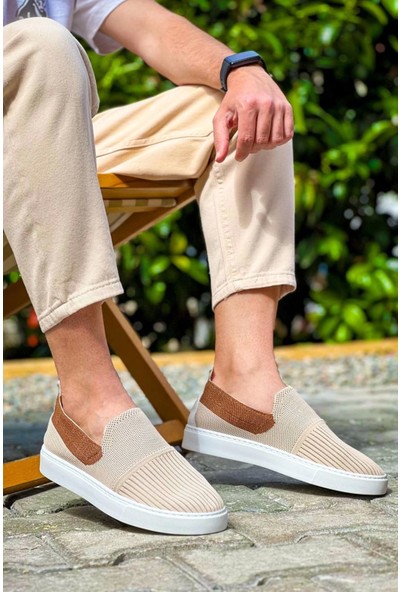 KB-114 Kuback Bej Taba Triko Yüksek Taban Bağcıksız Günlük Erkek Ayakkabı