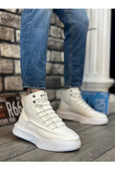 BA0321 Gizli Bağcıklı Erkek Yüksek Taban Beyaz Spor Bot