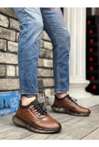 Aradım Taradım BA0345 Hakiki Deri Rahat Taban Ayarlanabilir Lastik Bağcıklı Desenli Taba Casual Erkek Ayakkabı