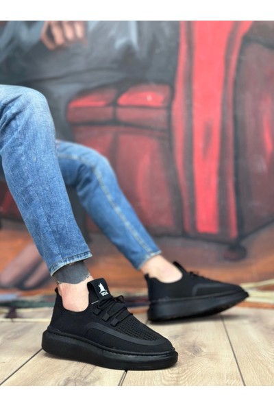 BA0375 Özel Örme Triko Tarz Siyah Renk Siyah Taban Spor Ayakkabı