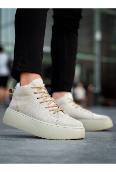 Aradım Taradım LE10 Bağcıklı Erkek Yüksek Taban Ithal Süet Krem Spor Bot