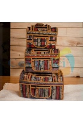 Araf Otantik 3lü Valiz & Bavul Seti, Yöresel Çanta, Dokuma Valiz
