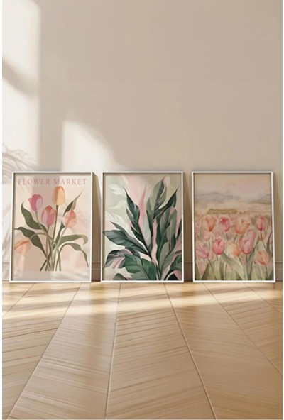AR AJANS KANVAS TABLO “whispers Of Spring” – Baharın Fısıltısı Çiçekler Dekoratif Çerçeveli Mdf 3lü Set Tablo Tablo