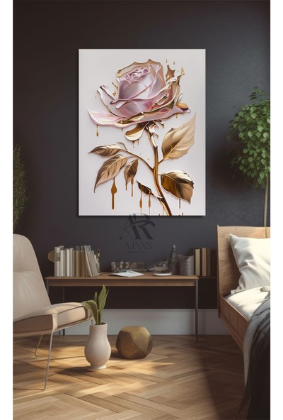 Ar Ajans Kanvas Tablo Pembe Çiçek ve Altın Detaylarla Süslü Dekoratif Kanvas Tablo