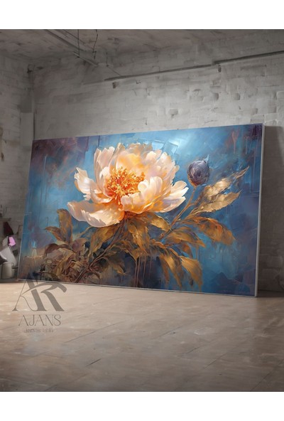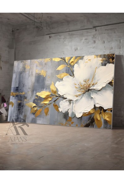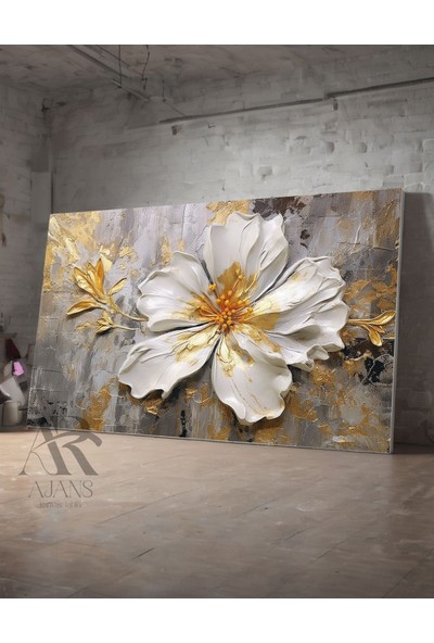 Ar Ajans Kanvas Tablo Beyaz Çiçek Yağlı Boya Görünümlü Dekoratif Kanvas Tablo