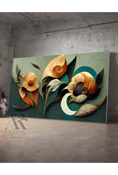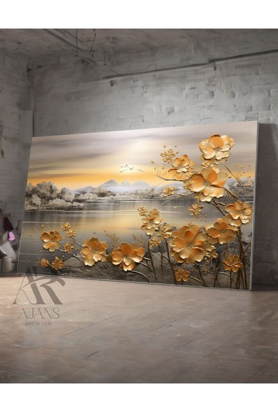 Ar Ajans Kanvas Tablo Göl Kenarındaki Gold Detaylı Çiçek Kanvas Tablo