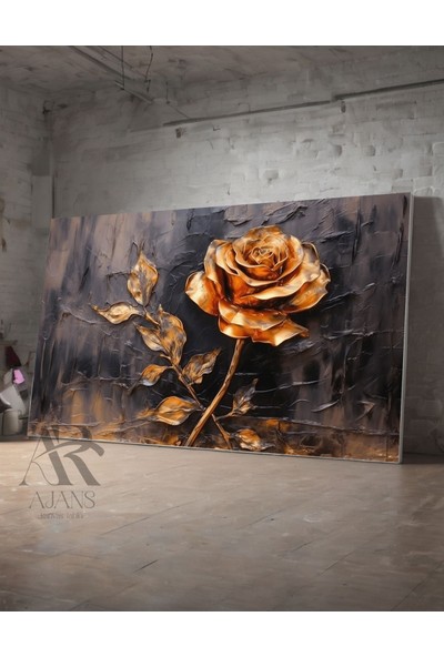 Ar Ajans Kanvas Tablo Gül Siyah ve Gold Detaylı Tablo