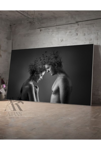 Ar Ajans Kanvas Tablo Çift Tasarım Gri Tonlarında Kadın- Erkek Dekoratif Kanvas Tablo