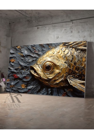 Ar Ajans Kanvas Tablo Balık Yağlı Boya Çizimi Fırça Görünümü Dekoratif Kanvas Tablo