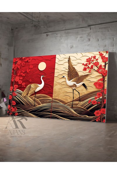 Ar Ajans Kanvas Tablo Leylekler Kırmızı Sarı Yatay Kesim Dekoratif Kanvas Tablo