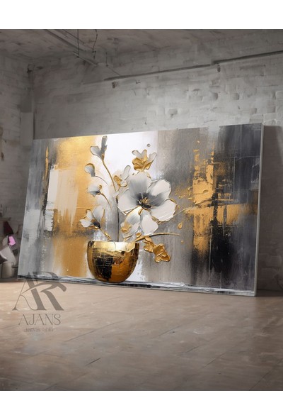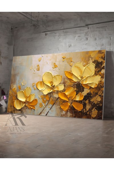 Ar Ajans Kanvas Tablo Altın Renkli Çiçek Salon Oturma Odası Kanvas Tablo