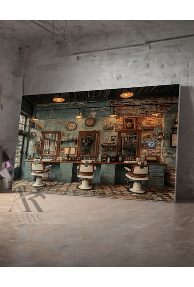 Ar Ajans Kanvas Tablo Berber Masası- Sandalyesi Eskitme Tasarım Kanvas Tablo