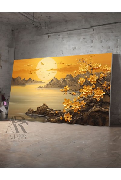 Ar Ajans Kanvas Tablo Güneş ve Altın Çiçek Salon Oturma Koridor Ofis Kanvas Tablo