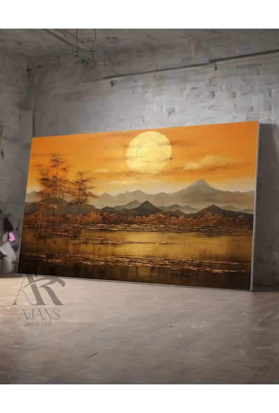 Ar Ajans Kanvas Tablo Dağlar Güneş ve Göl Dekoratif Görsel Kanvas Tablo