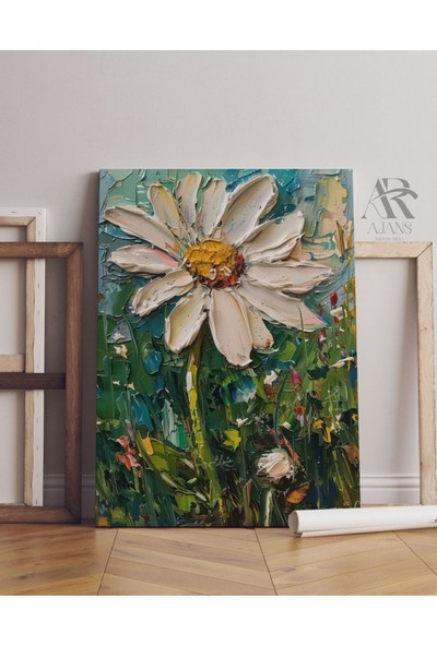 Ar Ajans Kanvas Tablo Beyaz Papatya ve Renklerin Ahengi Dekoratif Kanvas Tablo
