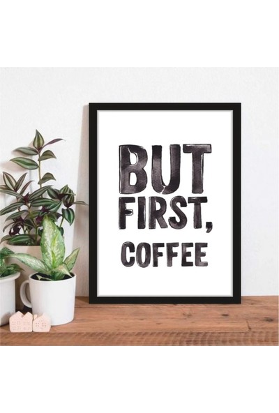 AR AJANS KANVAS TABLO But First Coffe (5) Temalı Çerçeve Görünümlü Mutfak Kahve Köşesi Balkon Mdf Poster