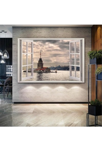 AR AJANS KANVAS TABLO Pencereden Kız Kulesi Manzarası Istanbul Türkiye Doğa Deniz Kanvas Tablo ART00138