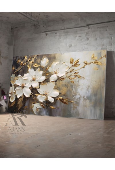 Ar Ajans Kanvas Tablo Tasarım Beyaz Çiçek Dekoratif Kanvas Tablo