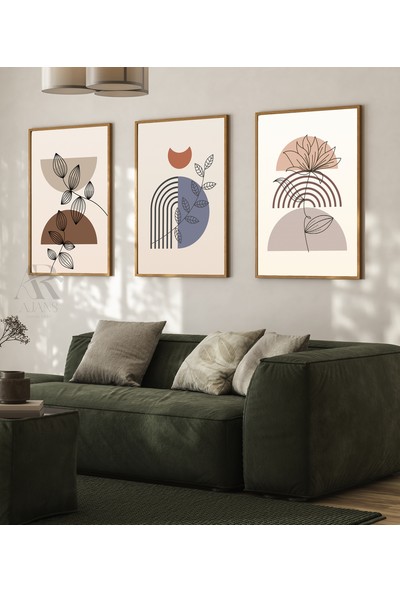 AR AJANS KANVAS TABLO Soyut 3 Lü Set Boho Dekoratif Mdf Tablo
