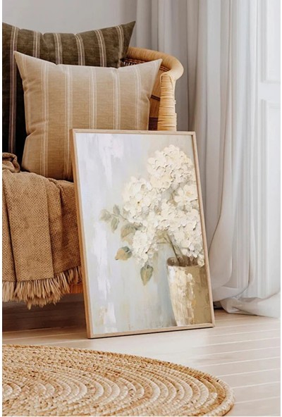 AR AJANS KANVAS TABLO Cozy Stil Saksıda Beyaz Çiçek Çerçeveli Mdf Tablo