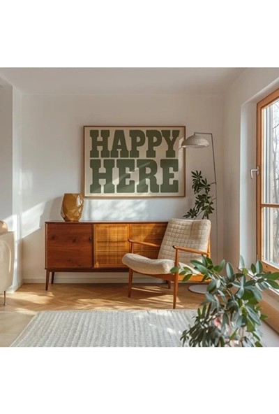 AR AJANS KANVAS TABLO "happy Here" Yazılı Çerçeveli Mdf Taablo