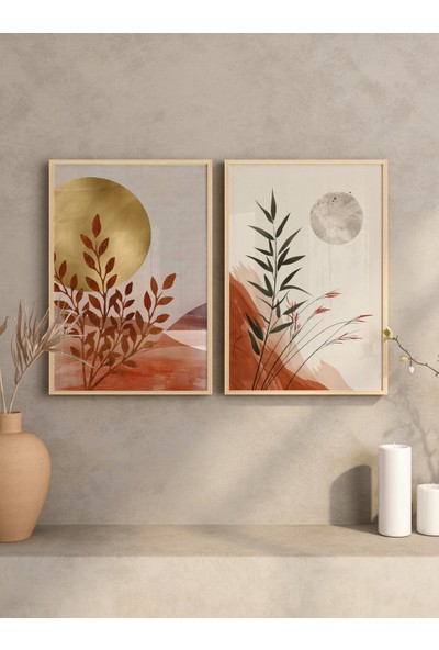 AR AJANS KANVAS TABLO Güneş & Ay Botanik Seti 2lü Set Çerçevesiz Mdf Tablo