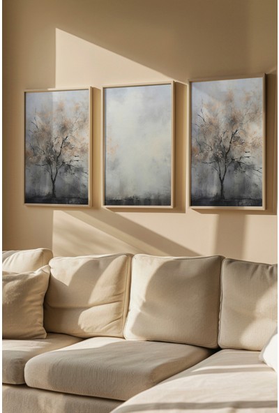 AR AJANS KANVAS TABLO Sonbahar Kış Modu Ağaç Çerçeveli 3lü Set Mdf Tablo