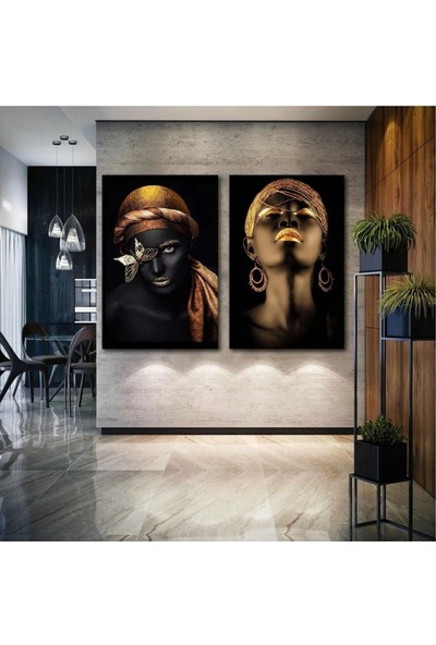 Ar Ajans Kanvas Tablo Afrikalı Siyahi Kadın Portre Gold African Woman Ikili Kombin 2 Li Set Kanvas Tablo