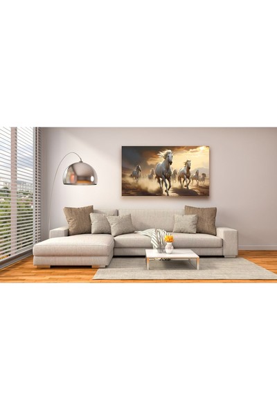 Ar Ajans Kanvas Tablo Asil Beyaz Atlar Dekoratif Kanvas Tablo
